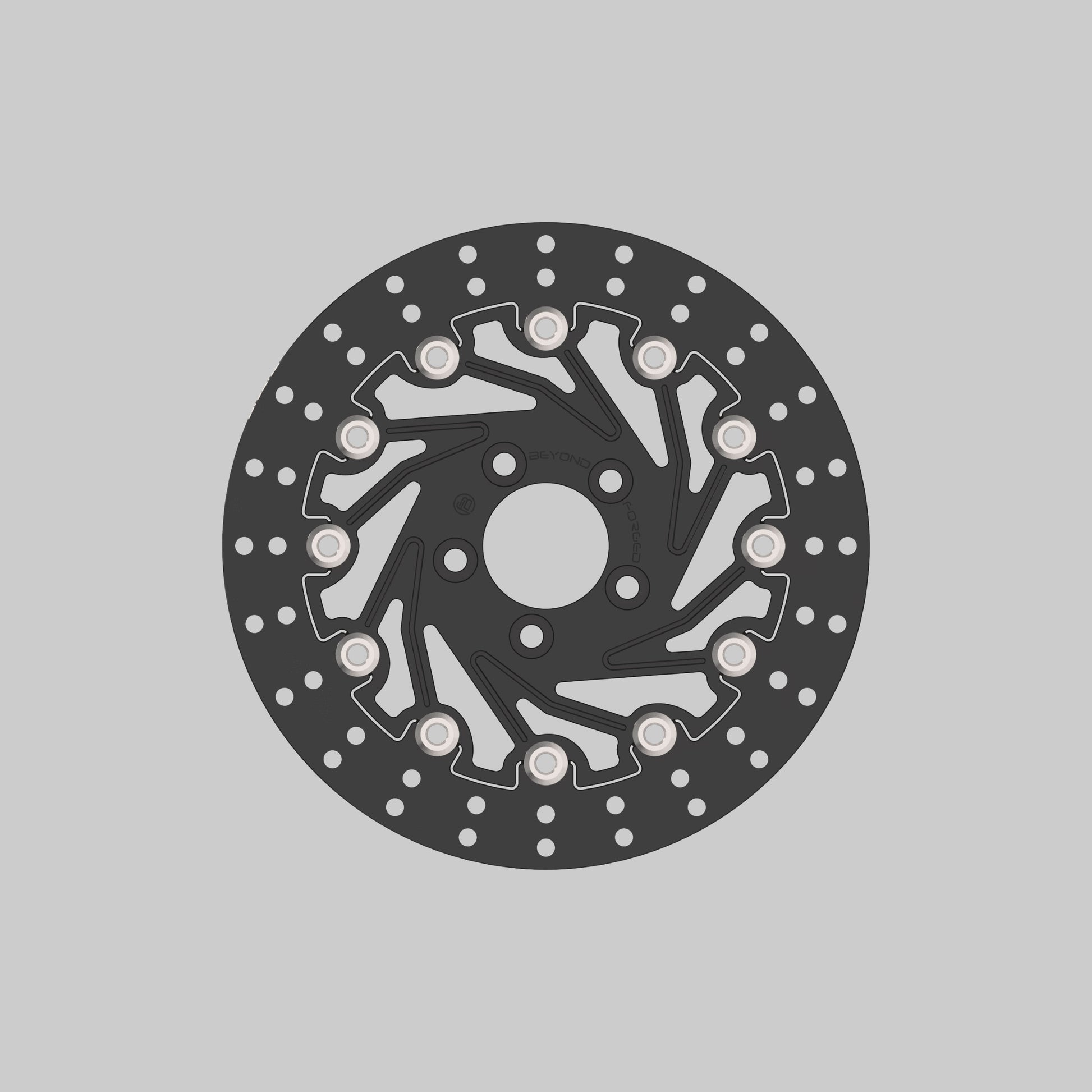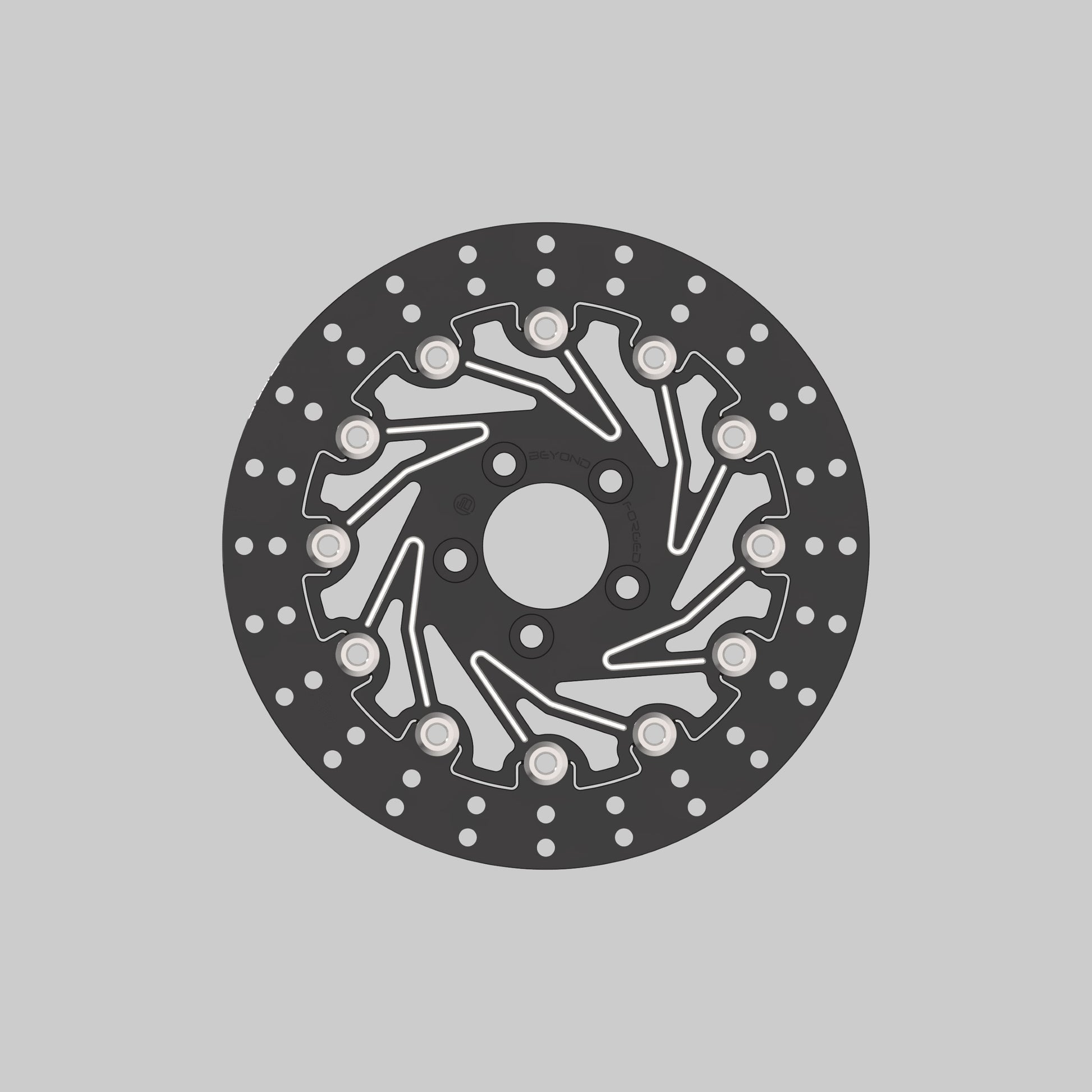 CNC加工により成形されたBEYONDホイール用フローテッドブレーキディスク。